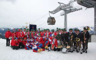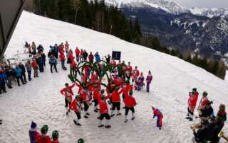 Traditioneller Schäfflertanz an der Jenner-Bergstation
